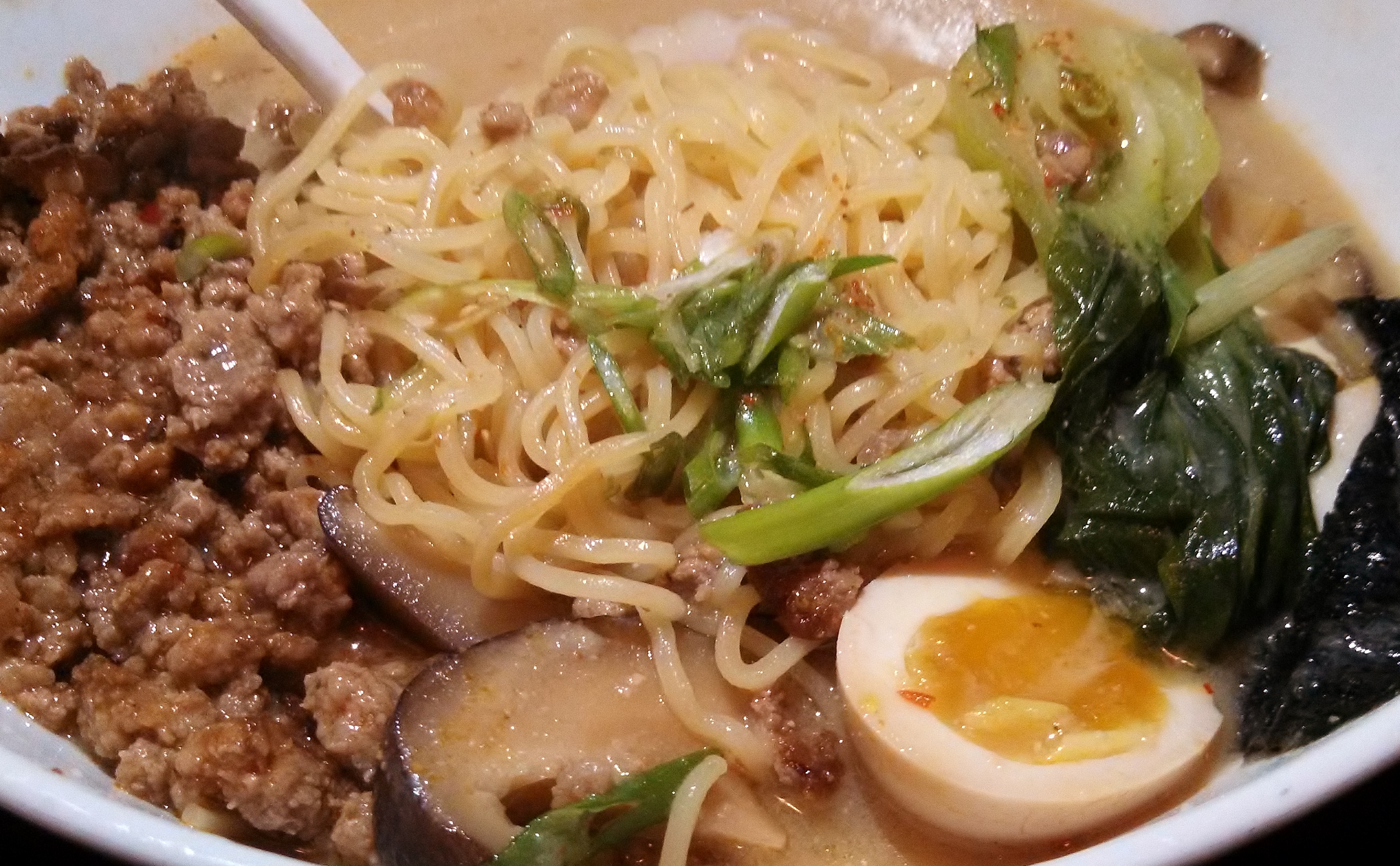 Additionally, a bowl of Tan Tan Men (egg noodles in spicy pork miso broth, soft-boiled egg, bamboo shoots, spinach, fish cake, seaweed, cabbage, carrots and seven spices) made a welcome appearance at our table. The addition of pork combined with a rich and spicy miso broth elevated this dish to a memorable category.